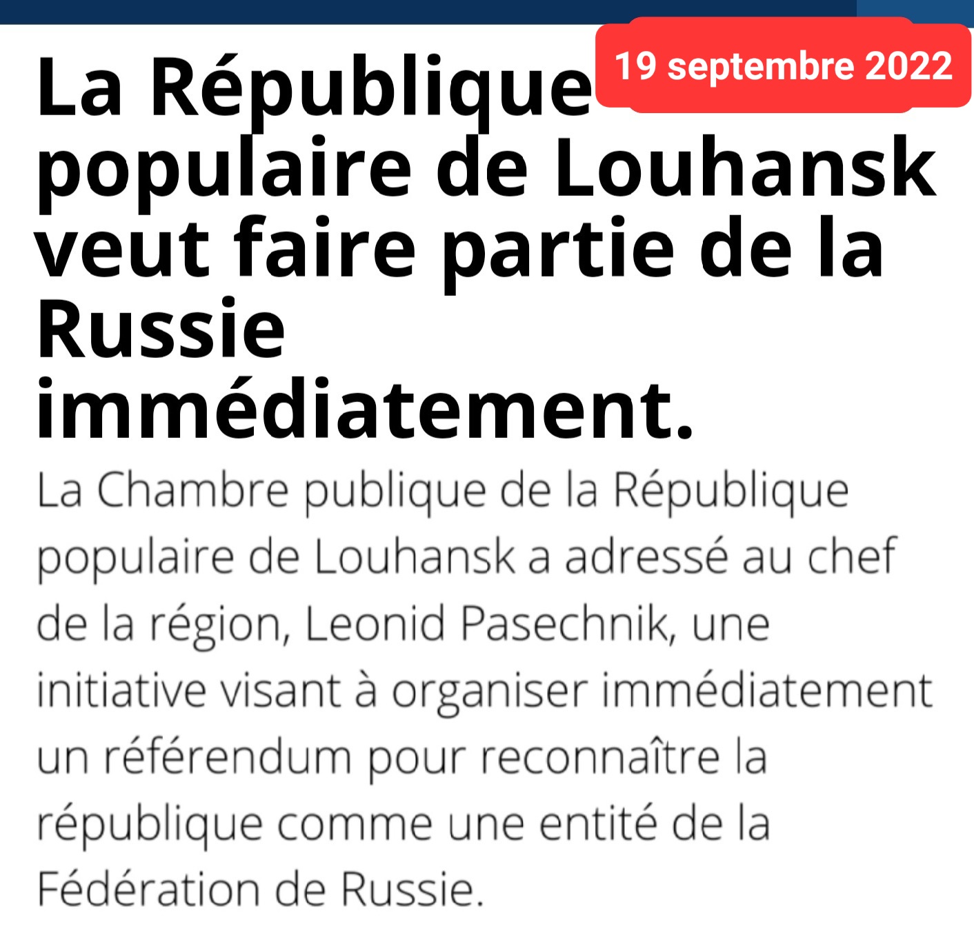 Les chefs des 2 Républiques russophones autoproclamées de Louhansk et Donetsk veulent que le référendum de rattachement à la Russie🇷🇺 ait lieu très vite.