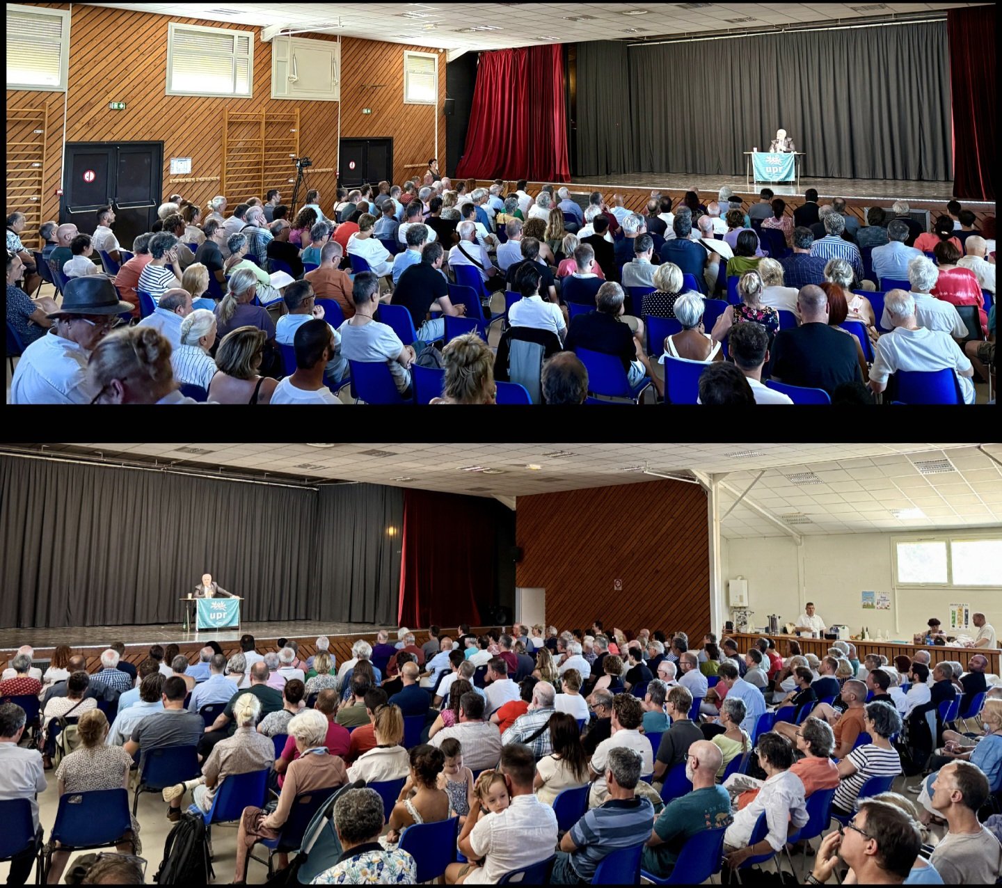 Malgré canicule, début des grandes vacances et lieu excentré, notre réunion de Fargues de Lagon a fait salle comble, à la surprise du maire (PCF) venu aimablement nous saluer.