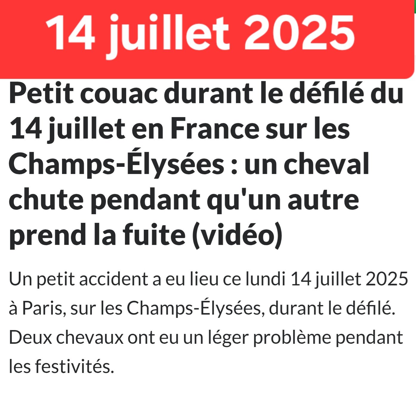 Avec tous leurs « couacs », les Défilés du 14 juillet présidés par Macron sont révélateurs de l’état de décomposition professionnelle et morale dans lequel ce psychopathe a plongé le pays.