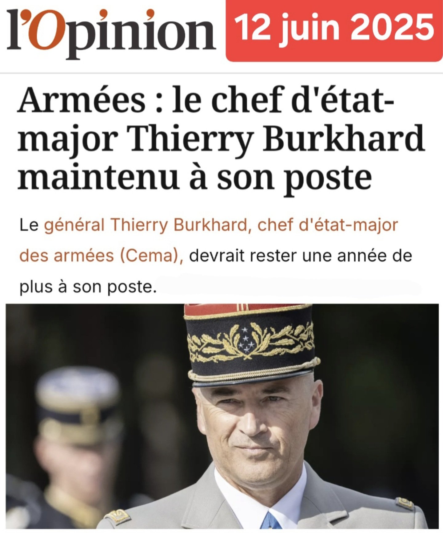 ▪️12/6/25 Selon la presse ,Burkhard reste CEMA encore 1 an
