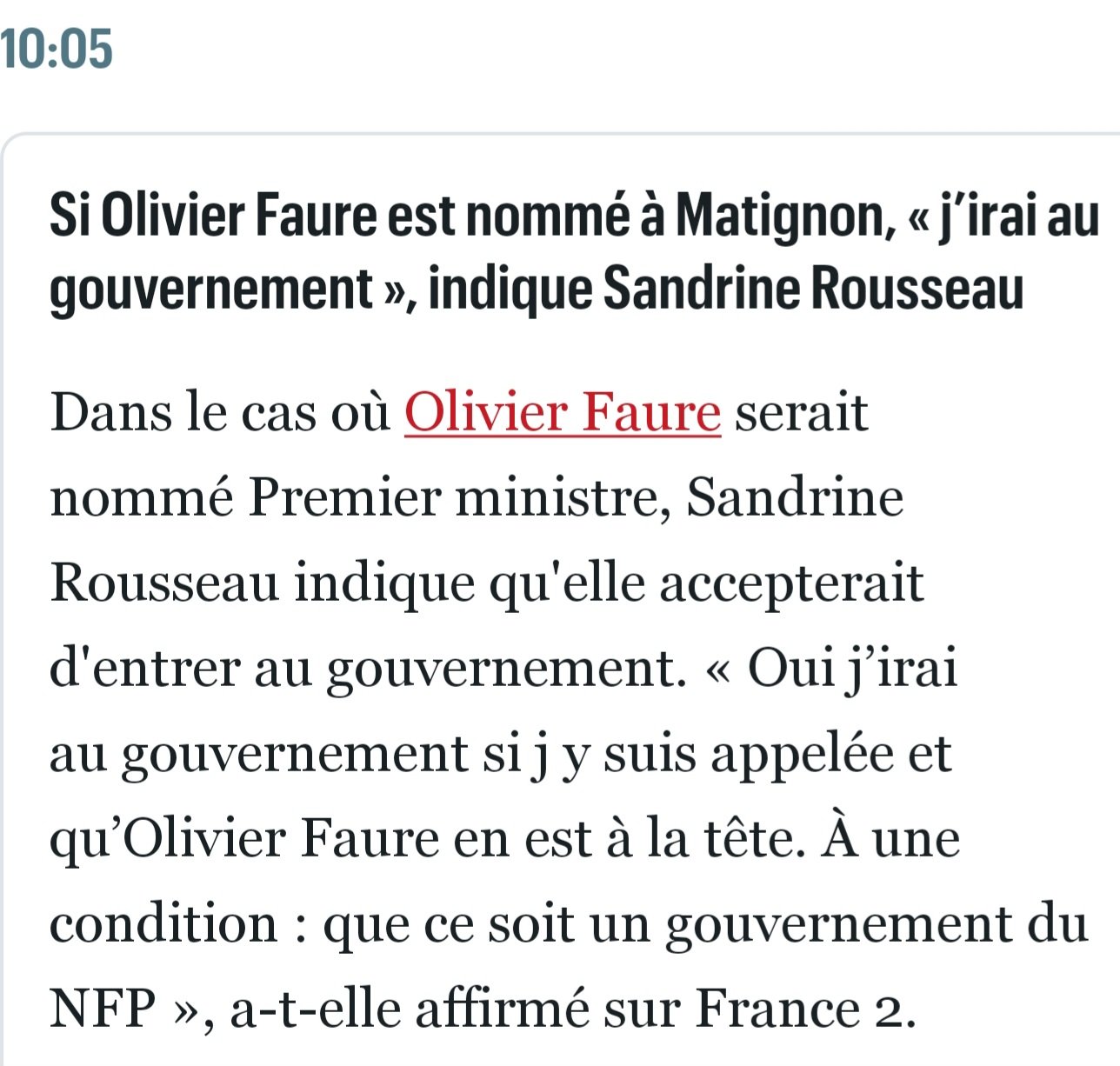⚠️SANDRINE ROUSSEAU « ACCEPTERA D’ENTRER AU GOUVERNEMENT » SI FAURE EST NOMMÉ À MATIGNONFrançois Asselineau 🇫🇷 @f_asselineau