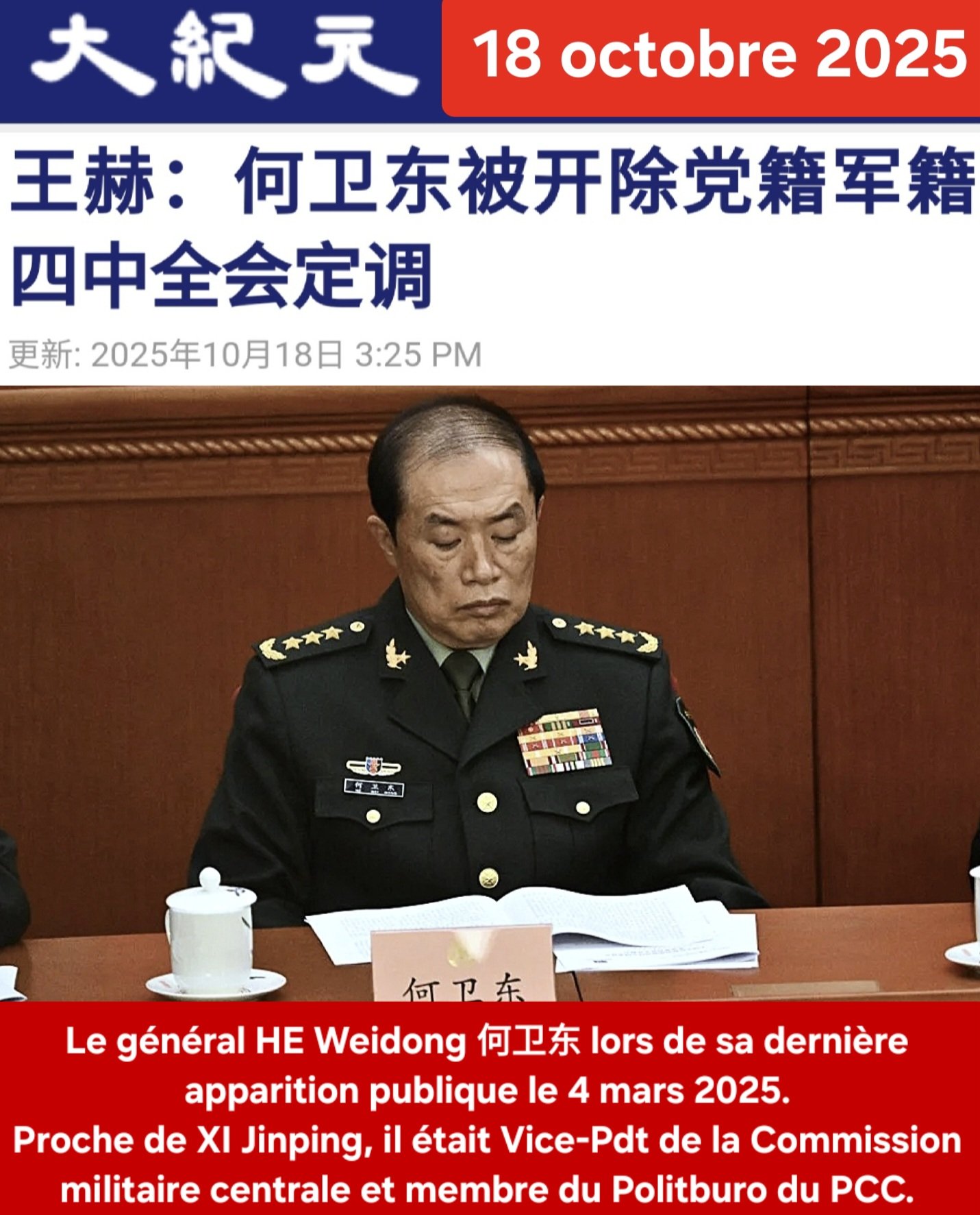 ⚠️ Il semble donc que XI Jinping soit en passe de perdre le pouvoir militaire au profit de ZHANG Youxia, vice-président de la CMC. (photo droite)