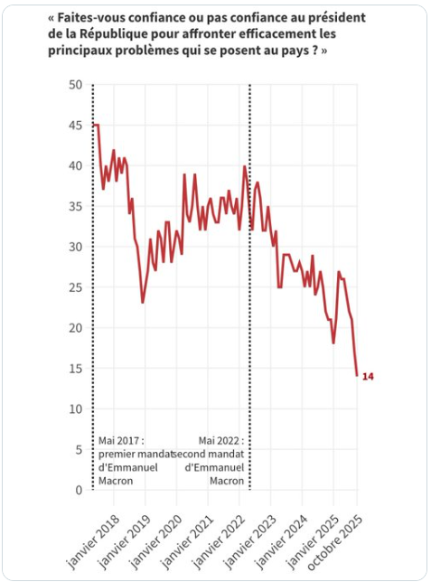 📉LA COTE DE CONFIANCE DE MACRON S’EFFONDRE À 14%