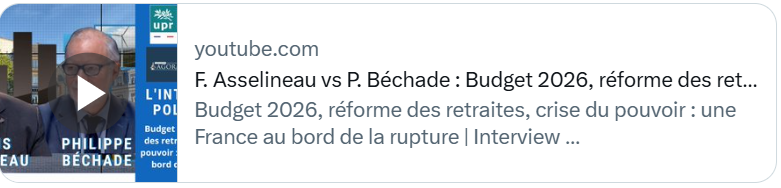 La vidéo de mon débat avec Philippe Béchade de ce mercredi 15 octobre 2025 (…)