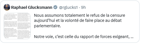GLUCKSMANN SE FÉLICITE DE L’ÉCHEC DES CENSURES CONTRE LECORNU. QUI EST SURPRIS ?