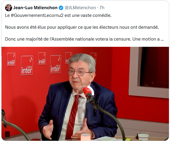 🔥 SELON MÉLENCHON,LECORNU-2 « VA ÉVIDEMMENT TOMBER »
