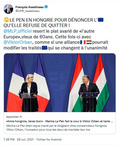 🙄LE PEN EN HONGRIE POUR DÉNONCER L’UE🇪🇺 QU’ELLE REFUSE DE QUITTER !