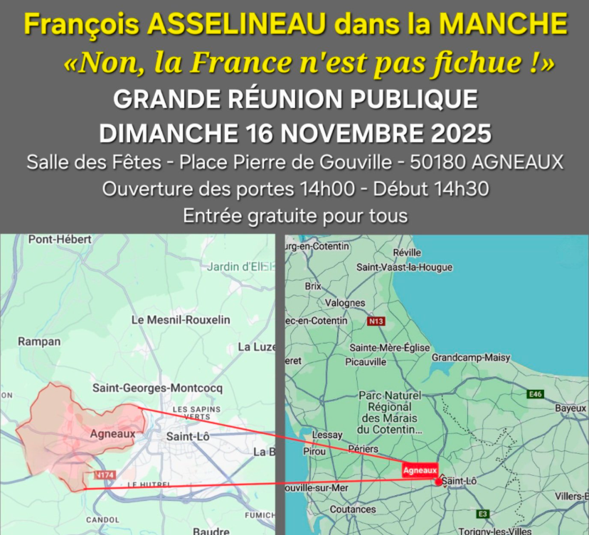 🗓 JE TIENS UNE GRANDE RÉUNION PUBLIQUE DANS LA MANCHE |